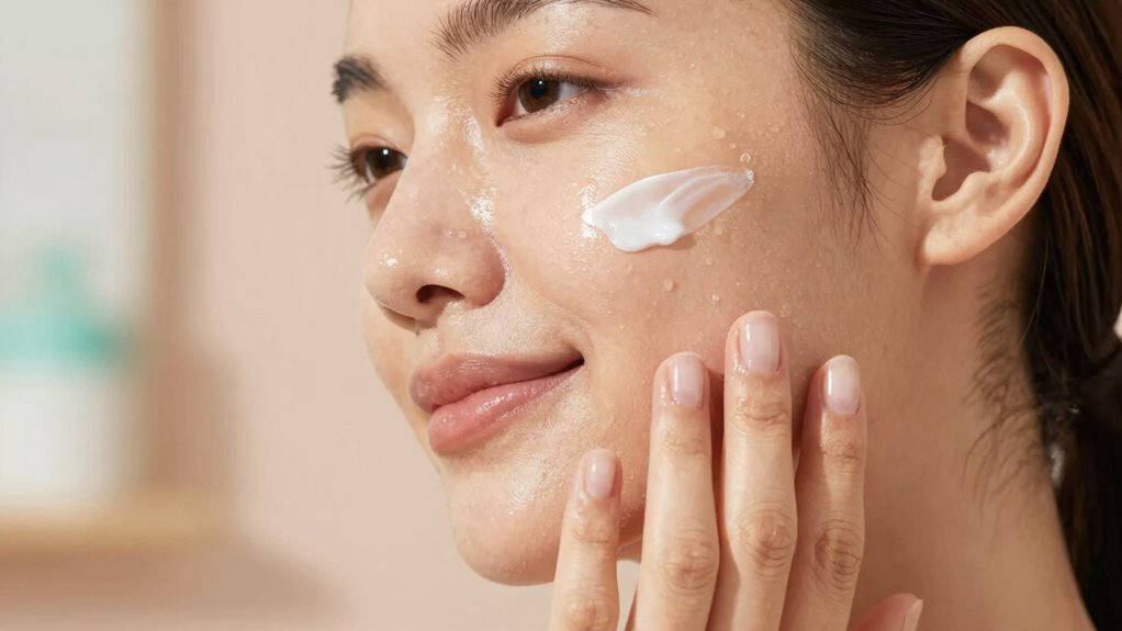 Staying well-hydrated is one of the simplest yet most effective ways to prevent dry skin flare-ups on your face. Proper hydration supports your skin’s barrier, making moisturizers more effective. Focus on consistent hydration routines—drink plenty of water throughout the day and incorporate hydrating foods like fruits and vegetables. When selecting a moisturizer, choose one suited for dry skin to lock in moisture effectively. Remember, hydration isn’t just about drinking water; it’s about maintaining overall fluid balance for your skin’s health. To deepen your understanding, consider exploring the importance of skin barrier health in maintaining overall skin hydration and resilience. Additionally, understanding youngster choice and other factors can help tailor your skincare routine for optimal results. Maintaining a balanced skin barrier is crucial for preventing moisture loss and protecting against environmental irritants, which can exacerbate dryness. Recognizing the role of moisturizer ingredients can further enhance your skincare effectiveness. Furthermore, paying attention to hydration levels can help you adjust your routine as needed for better skin hydration.