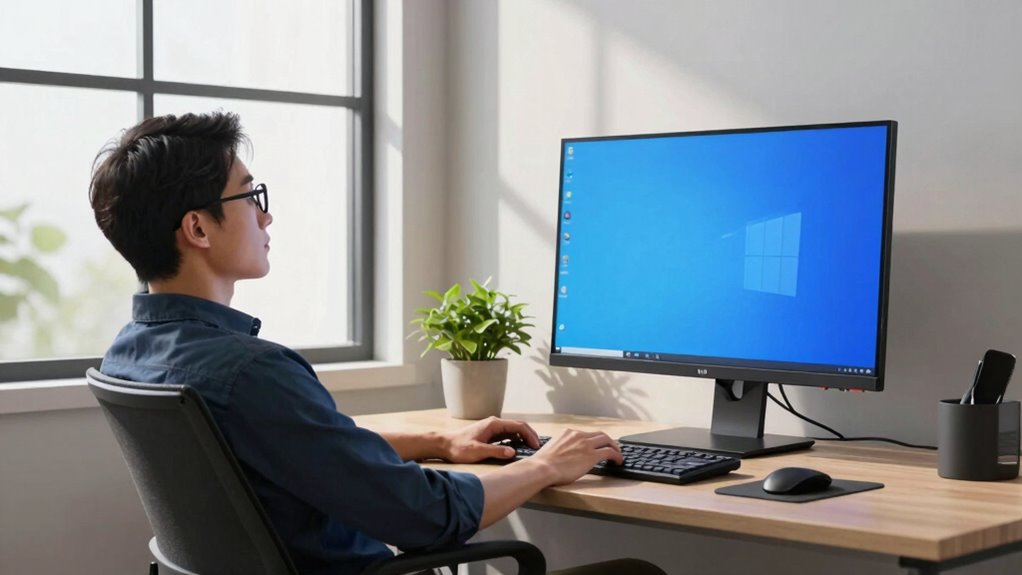By following these simple tips, you can substantially reduce eye strain and stay comfortable during work. Did you know that taking regular breaks can decrease eye discomfort by up to 50%? Small changes like adjusting your screen, practicing the 20-20-20 rule, and maintaining good posture make a huge difference. Protecting your eyes now means fewer problems later, so start implementing these habits today for healthier, happier eyes tomorrow.
