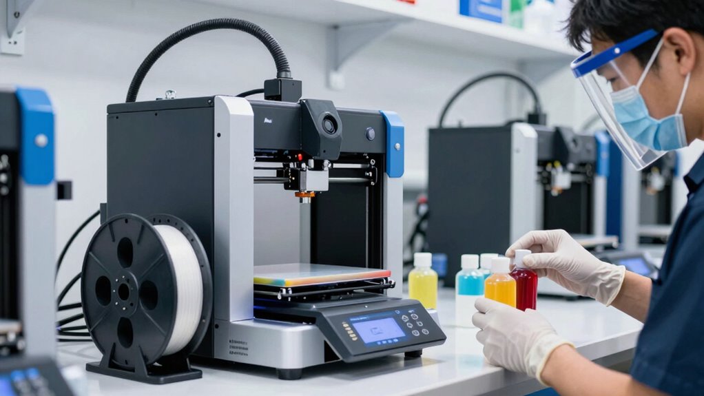 3D printing offers exciting possibilities, but it also comes with safety risks that you need to understand. One of the most important concerns revolves around resin toxicity and the ventilation requirements necessary to keep your workspace safe. When working with resin-based printers, you’re dealing with chemicals that can pose health hazards if not handled properly. Resin toxicity becomes a significant issue because many liquid resins contain volatile compounds and photoinitiators that release fumes during curing. These fumes can irritate your skin, eyes, and respiratory system, especially if you’re exposed repeatedly or over long periods.