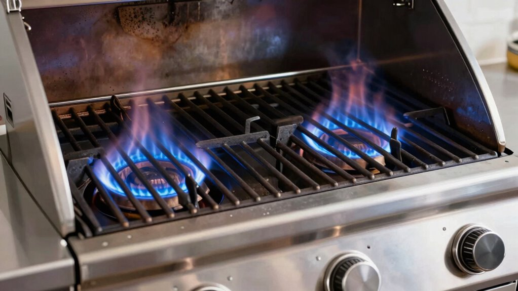 Understanding heat zones on a gas grill is essential for cooking your food evenly and efficiently. When you’re setting up your grill, proper grill zone placement is key to controlling how your food cooks and preventing those pesky burnt spots. By dividing your grill into distinct heat zones, you can manage the heat more precisely and avoid overcooking or undercooking different items. Typically, you’ll create at least two zones: a direct heat zone for searing and a indirect heat zone for slower cooking or finishing. This setup allows you to move food between zones as needed, giving you better control over the cooking process.