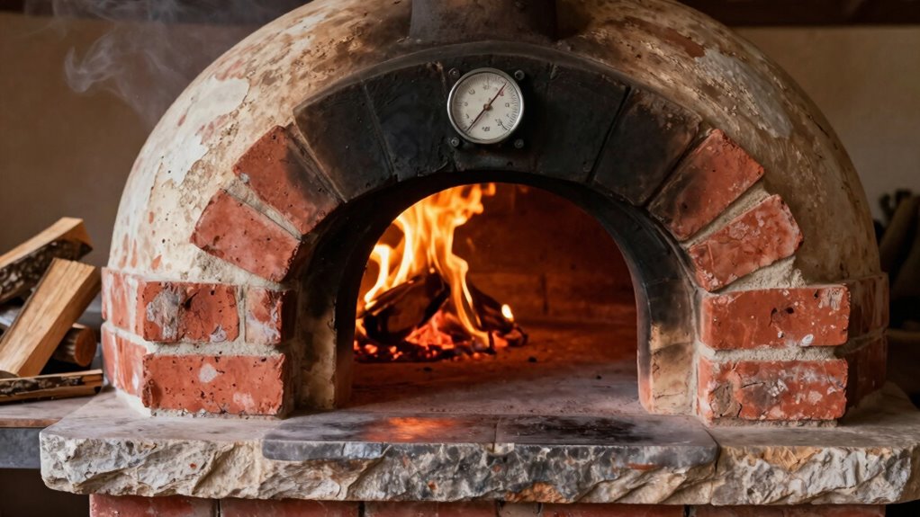 Preheat duration for your outdoor pizza oven typically takes about 15 to 30 minutes, depending on the oven’s size and insulation. You should aim to reach the ideal oven temperature of around 700°F to 800°F for perfect pizzas. During this time, keep the fire steady and monitor the temperature gauge closely. Once the desired temperature is achieved, you’re ready to start cooking your delicious pizzas.