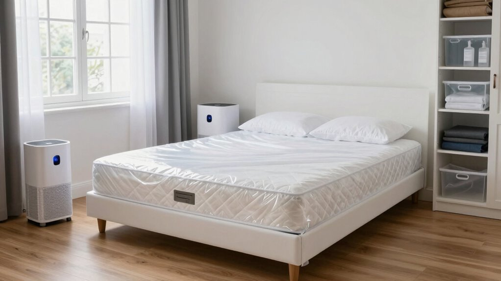 Air purifiers are effective for allergy-proofing when you choose allergy-friendly devices with HEPA filters. Don’t fall for air purifier myths that suggest they eliminate all allergens; they markedly reduce dust, pet dander, and pollen, improving your indoor air quality. Regular maintenance, like changing filters, is essential. Using an air purifier alongside other allergy-proofing tips creates a healthier, more comfortable bedroom environment for you.