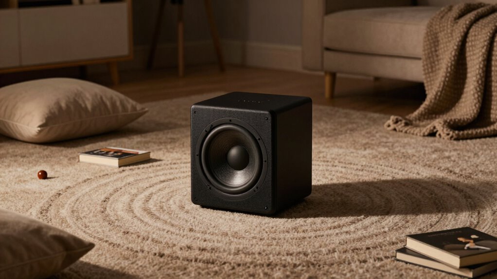 Proper subwoofer placement is vital for achieving balanced and powerful bass in your listening space. When you position your subwoofer correctly, it enhances the overall sound quality and guarantees that you experience deep, accurate lows without overwhelming other frequencies. To do this effectively, you need to understand how room acoustics influence bass response and how to calibrate your speaker system for peak performance. The way sound waves interact with your room’s surfaces can cause certain frequencies to cancel or amplify, leading to uneven bass. By paying close attention to room acoustics, you can identify the best spot for your subwoofer and avoid bass nulls or boomy spots. This is where the “sub crawl” technique comes into play.