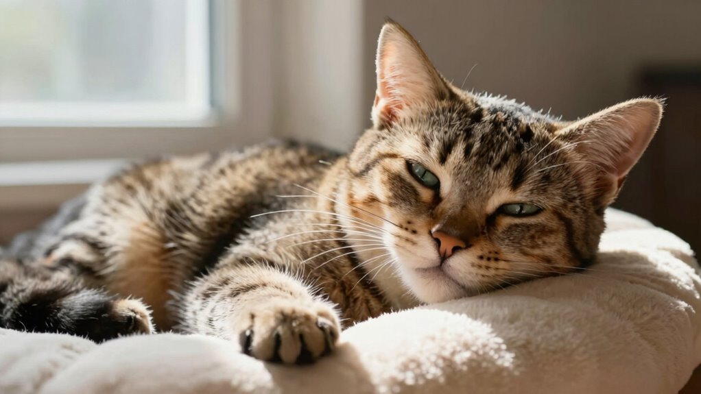 Purring emits vibrations at a frequency that can stimulate the growth of healing cells in a cat’s body. These low-frequency vibrations are a remarkable aspect of feline behavior, influencing more than just sound. As you observe your cat’s vocalizations, you might notice how these vibrations promote tissue regeneration and reduce inflammation. Scientific studies suggest that purring can: