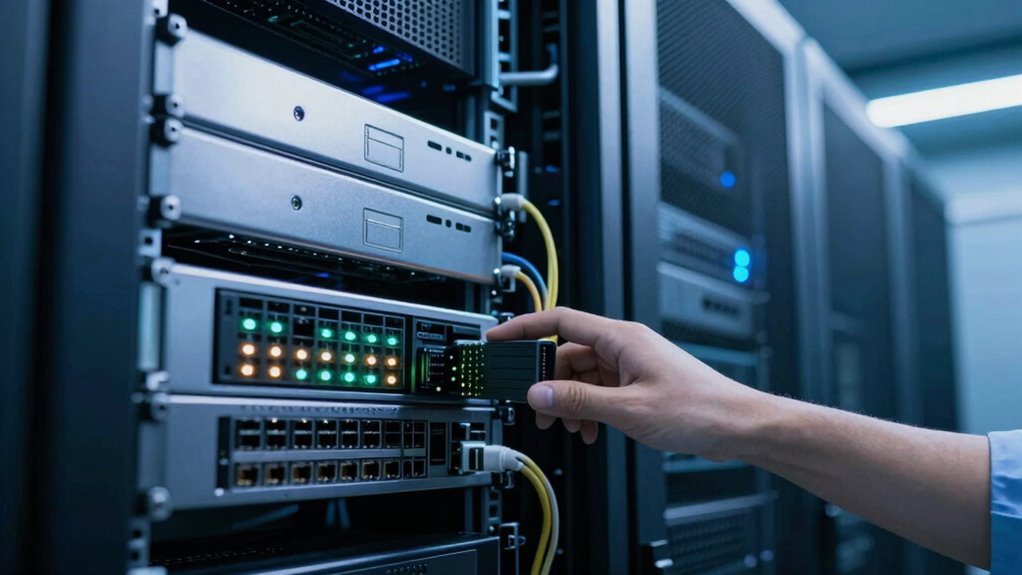 RAID can’t prevent all types of data loss. While it protects against hardware failures, it doesn’t guard against accidental deletion, malware, or physical disasters. To truly safeguard your data, consider using cloud storage for off-site backups and data encryption for security. Combining RAID with these strategies ensures thorough protection, reducing risks of data loss from various threats beyond just hardware issues.