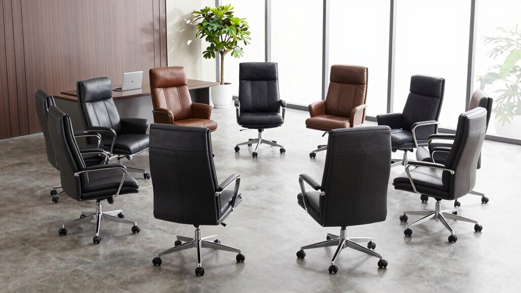 If you’re searching for the 15 best executive office chairs under $600 in 2026, I’ve got you covered. These chairs combine ergonomic features, durable materials, and sleek designs to keep you comfortable during long work hours. They offer adjustable lumbar support, supportive high-backs, and mobility with quality casters—all within a budget. Stick around, and you’ll discover detailed insights that will help you choose the perfect chair for your workspace.