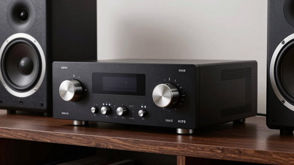 Choosing the right hi-fi stereo amplifier under $700 can truly elevate your listening experience. Did you know that Bluetooth-enabled amps now account for over 60% of new audio purchases? Whether you prefer classic analog sound or modern wireless convenience, there’s a perfect match for your needs. Remember, balancing power, connectivity, and features guarantees you get the best bang for your buck. Happy listening—your ideal setup is just a choice away!