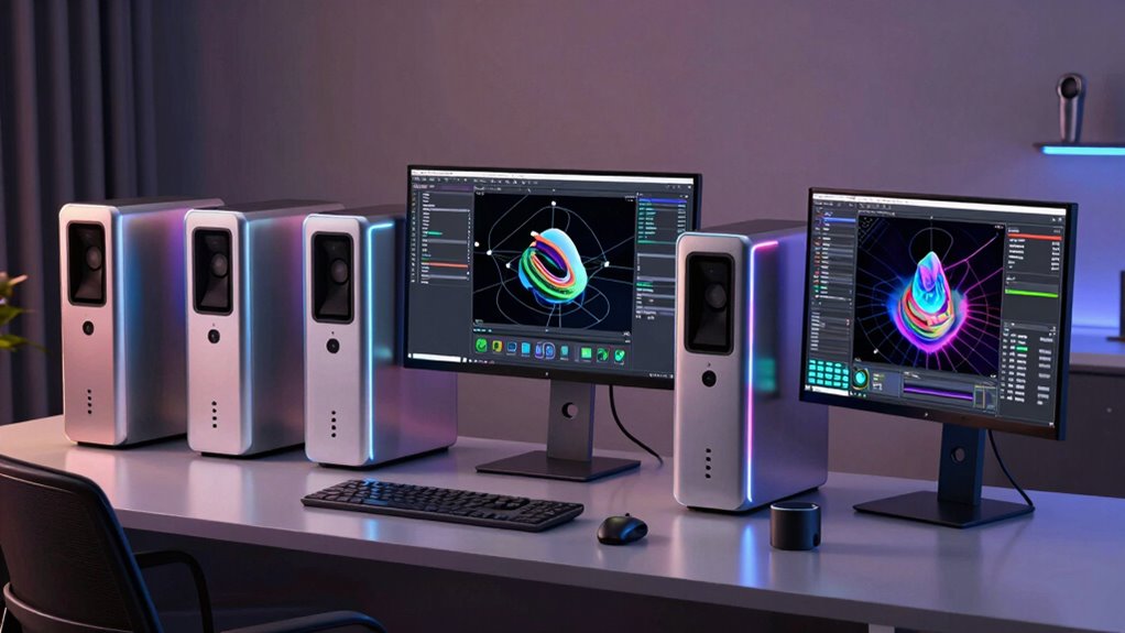 When selecting a Mac Pro for 3D and simulation work, ensuring software compatibility is essential for maintaining workflow efficiency. I make sure the Mac Pro supports the latest versions of key software like Autodesk Maya, Blender, and ANSYS, which require macOS and specific hardware features. It’s fundamental that the operating system and hardware architecture are optimized for these professional applications to access maximum performance. I also verify that the GPU and CPU meet the demands of hardware-accelerated rendering and simulation, such as ProRes or CUDA-like capabilities. Seamless integration with plugins, add-ons, and external hardware is critical, too. Additionally, I consider the ecosystem’s support for cross-platform collaboration, cloud rendering, and data sharing, which streamline complex workflows and enhance productivity.