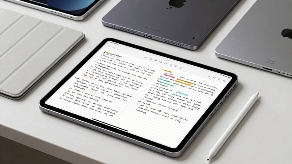 Choosing a tablet for note-taking hinges on the quality of the writing experience, which directly impacts how naturally and efficiently I can jot down ideas. A smooth writing experience relies on low latency and minimal input lag, making handwriting feel natural and effortless. High stylus sensitivity, with more pressure levels, allows me to create detailed strokes and varied line thicknesses, enhancing precision. The display’s texture, like matte finishes or paper-like surfaces, provides tactile feedback that mimics traditional paper and reduces glare. Accurate digitization ensures my handwritten notes are seamlessly converted into editable text. Customizable pen settings, including thickness and color, let me personalize my notes and stay comfortable during long sessions. All these factors combine to create an intuitive and satisfying note-taking experience.