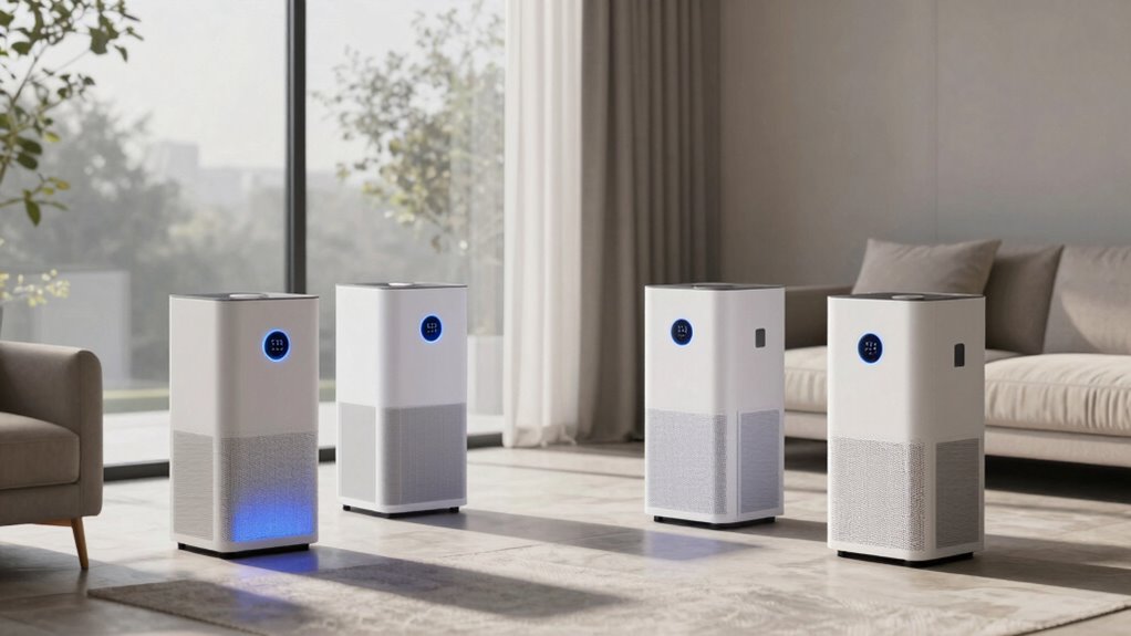 Noise levels are a crucial factor to take into account because they directly impact your comfort and ability to sleep or concentrate while running the air purifier. Air purifiers are measured in decibels (dB), with quieter models operating below 30 dB, similar to a whisper. For bedrooms or quiet spaces, look for units with sleep modes or ultra-quiet settings that keep noise around 15-20 dB. Higher fan speeds, necessary for maximum filtration, can exceed 50 dB and disrupt sleep or work. Some units incorporate noise reduction technology, reducing sound levels during operation. Balancing effective filtration with acceptable noise levels is essential for continuous use during wildfire smoke events, ensuring you stay comfortable without sacrificing air quality or restful sleep.