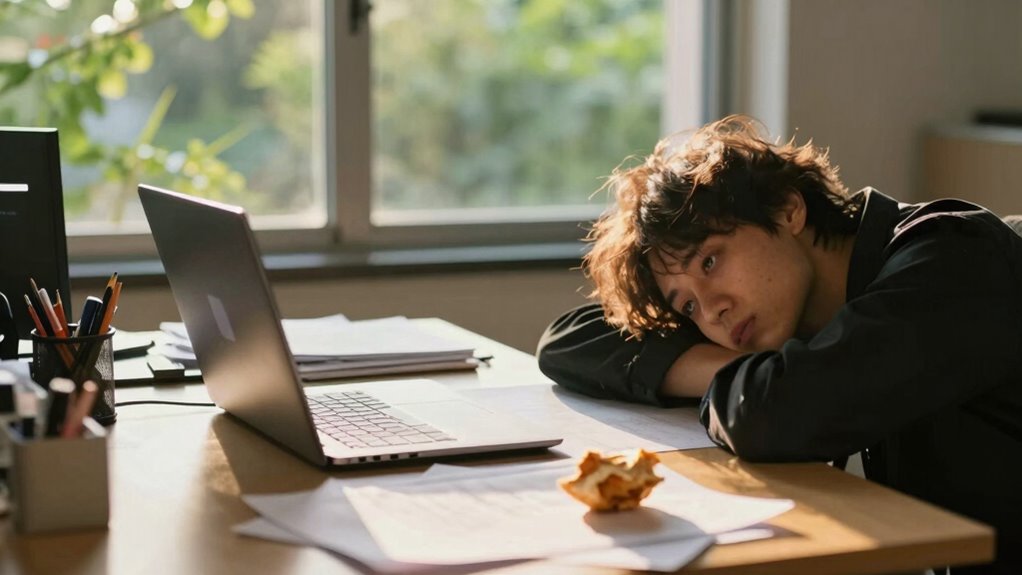In the afternoon, your focus drops because of natural energy cycles, circadian rhythms, and brain fatigue after morning tasks. Blood sugar dips, hormonal changes, and slower brain activity all play roles in making it harder to concentrate. To stay productive, try scheduling demanding work when your energy is higher, taking short breaks, staying hydrated, and managing your workload based on your personal energy patterns. Explore how to optimize your day further for better focus throughout.